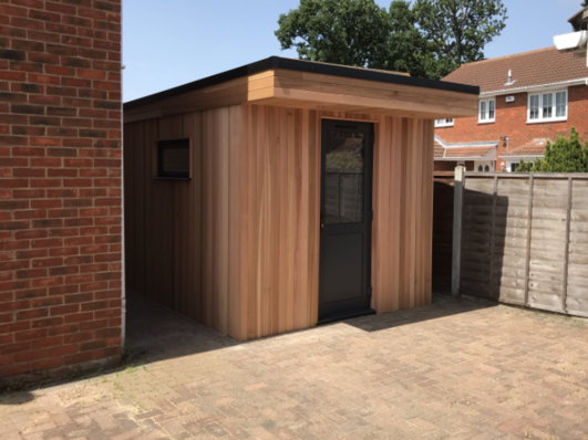 The client wanted a stylish garden office as he works from home. All our rooms are fully insulated so he is able to work in comfort all year round. By replacing an existing shed, it has freed up valuable space in the house and he can now work in peace.