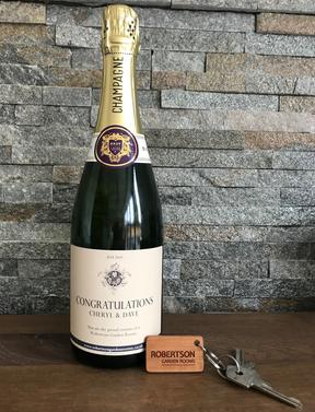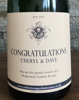 We were delighted to present Cheryl and Dave with a personalised bottle of celebratory champagne and a keyring for their Robertson Garden Room.