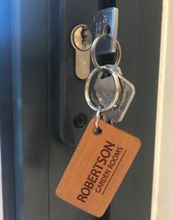 We were delighted to present Kim and Liam with a personalised bottle of celebratory champagne and the keys to their new Robertson Garden Room.