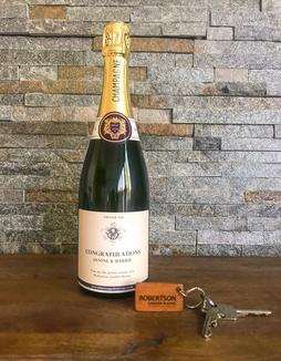 We were delighted to present Janine and Barrie with a personalised bottle of celebratory champagne and the keys to their new Robertson Garden Room.