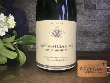 We were delighted to present Tim and Michelle with a personalised bottle of celebratory champagne, a bouquet and the keys to their new Robertson Garden Room.