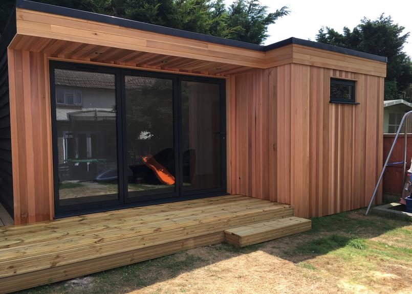 This build suits the needs of the whole family and provides the perfect chill out space. It features 3 panel aluminium bifold doors in dark grey, a small window and a storage area on the side. The compact WC adds convenience and saves trips back up to the house!